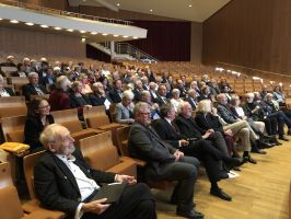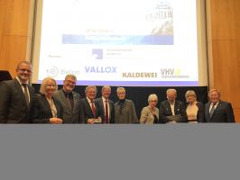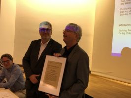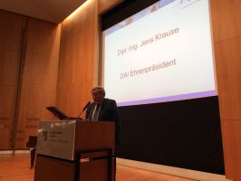 Nach der Preisverleihung: Würdigung des bisherigen, langjährigen Präsidenten des DAI, Prof. Dipl.-Ing. Christian Baumgart, durch DAI Ehrenpräsident Dipl.-Ing. Jens Krause